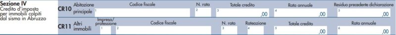 Sezione IV – Crediti d’imposta per immobili colpiti dal sisma in Abruzzo
