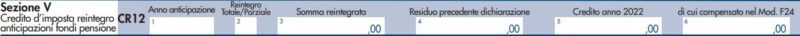 Sezione V – Credito d’imposta reintegro anticipazioni fondi pensione