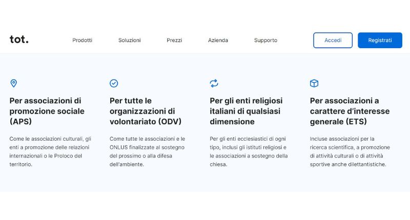 Se in precedenza l’offerta business di Tot era rivolta solo ad aziende e professionisti di varia natura, oggi la fintech ha aperto anche al settore delle associazioni e terzo settore – recentemente andati incontro a una sostanziale riforma, che coinvolge anche l’ambito della trasparenza nelle operazioni finanziarie.
