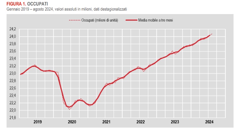 Il tasso di occupazione ad agosto 2024 è del 62,3%, con una crescita sistemica dal 2023.